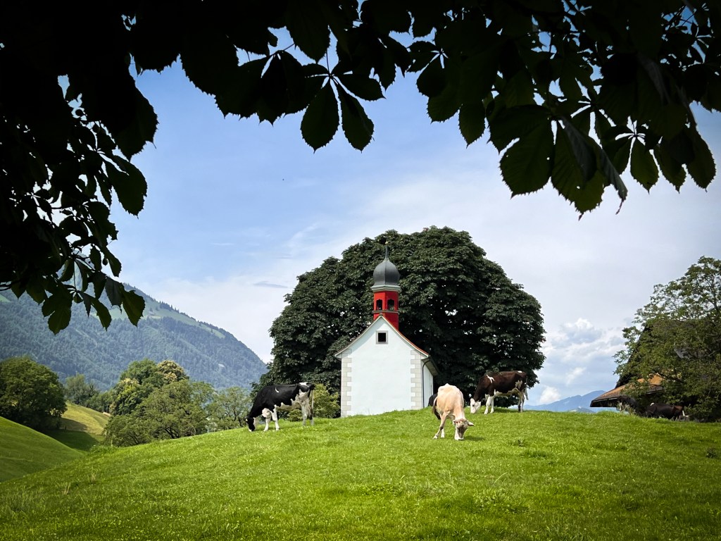 …Auffallend auf diesem Weg über dem Ufer des Vierwaldstättersees sind die vielen kleinen Kapellen, welche angrenzend an Höfe, auf Wiesen und umzingelt von Kühen weiss in den Hängen leuchten.