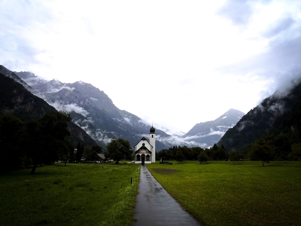 …Die hohen Berge, welche uns auf unseren Etappen durchs Mittelland so lange gelockt haben, schauen zwar mystisch zwischen den Wolkenfetzen hervor. Dennoch bleiben sie wetterbedingt weiterhin in unerreichbarer Ferne.