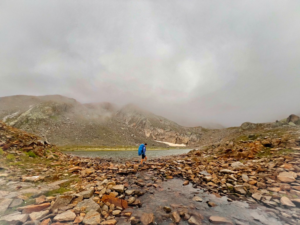 Ganz recht hat er nicht, wie sich bald zeigen wird – dafür wird der Gotthard in den folgenden Stunden zweifellos seiner Bezeichnung als Wasserscheide Europas gerecht. Diese geht darauf zurück, dass sowohl Rhein und Rhone wie auch Reuss und Ticino im Gotthardgebiet entspringen und sich ihre Ströme in 4 Himmelsrichtungen ergiessen. In diesen frühen Morgenstunden ist der Erguss jedoch eher über uns, als über Resteuropa (wobei er dort vielleicht auch ist, was uns allerdings wenig interessiert)…